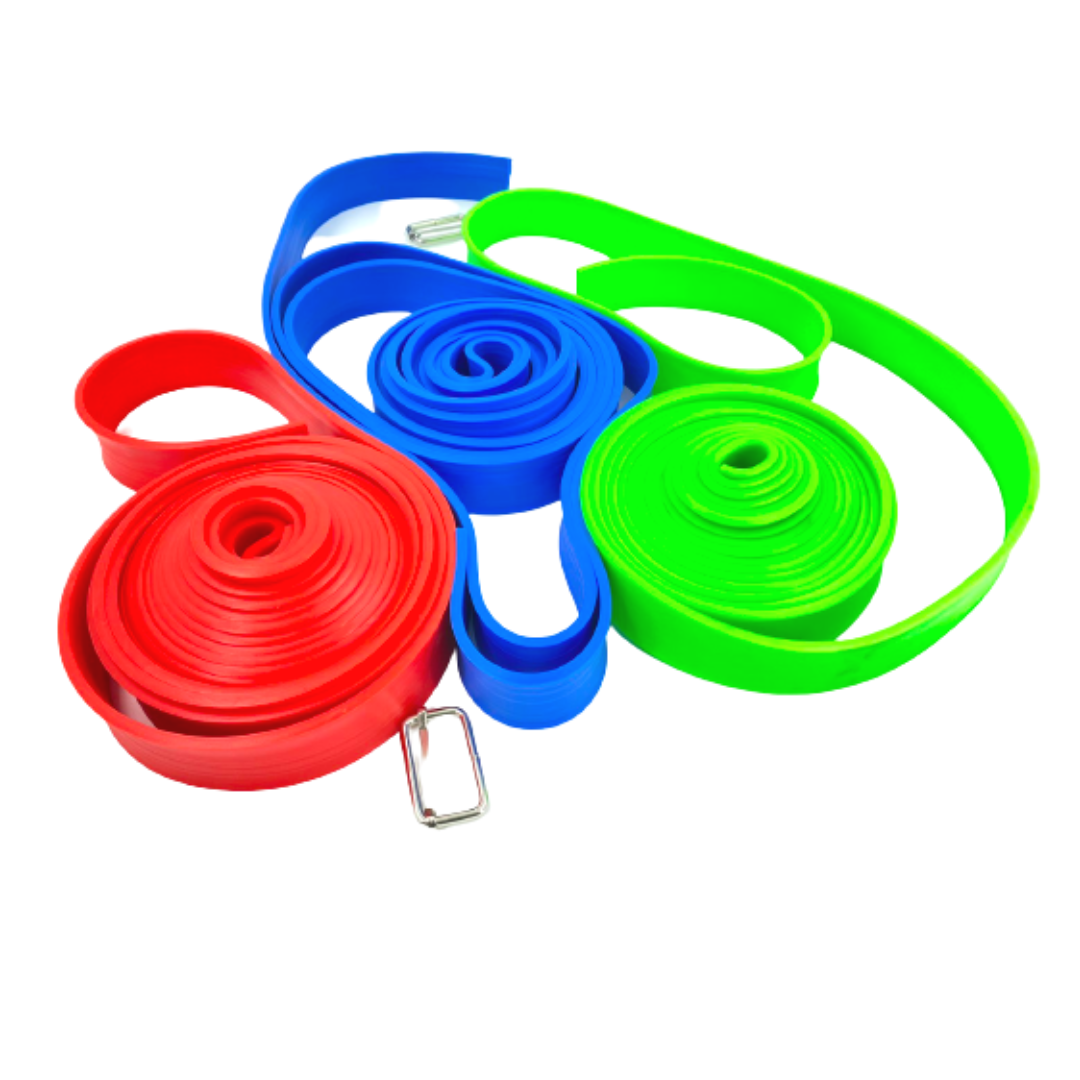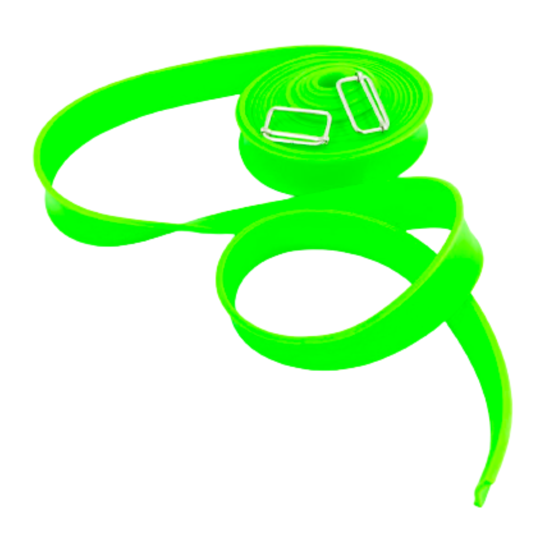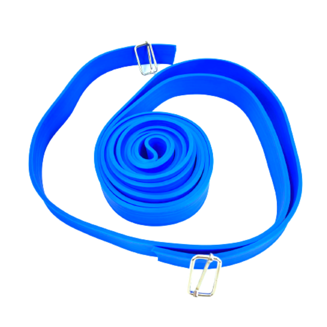 Material goma resistente, liga abierta, 5 metros de largo, 2 hebillas para cerrarlas.